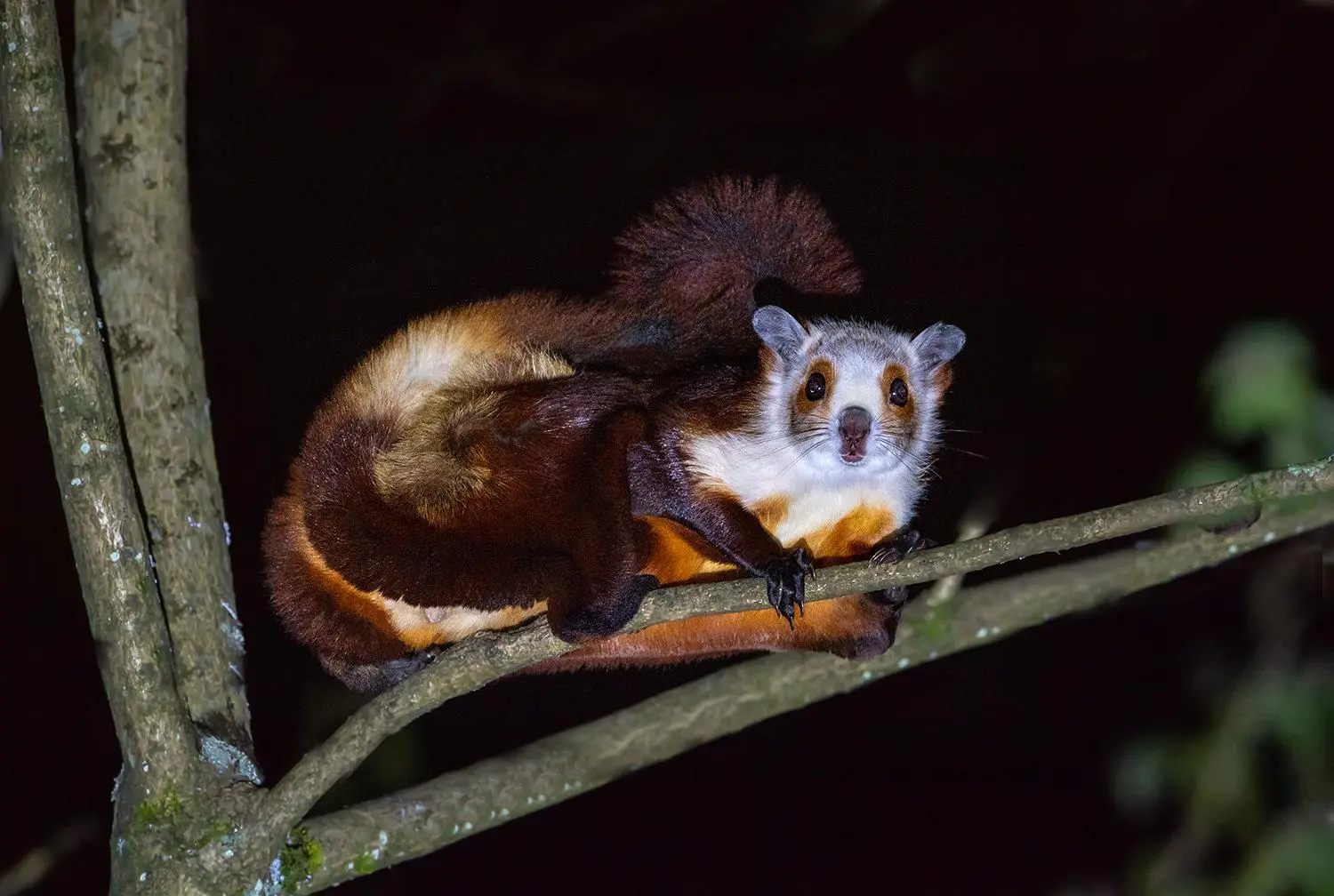 古人哪见过这场面?一看能“飞”,立马盖章:必须是鸟! 可你要是凑近了细瞅,这“鸟”长得实在不伦不类:圆滚滚的身子裹着棕毛好股盛,脑袋和前胸却白乎乎的,抱着树干打瞌睡时活像只考拉;尾巴比身子还长,蓬松得能当扫帚;最扎眼的是耳根那撮软毛,风一吹直晃悠。