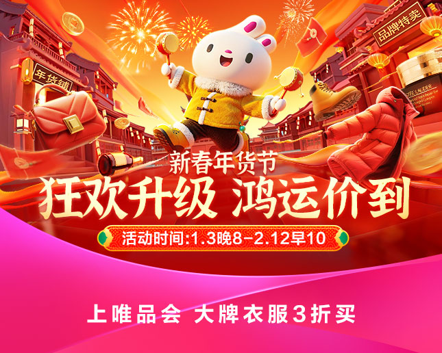 据特卖电商唯品会消息,其新春年货节“狂欢62小时”将于1月25日晚8点开启嘉汇优配,延续至1月28日早10点。